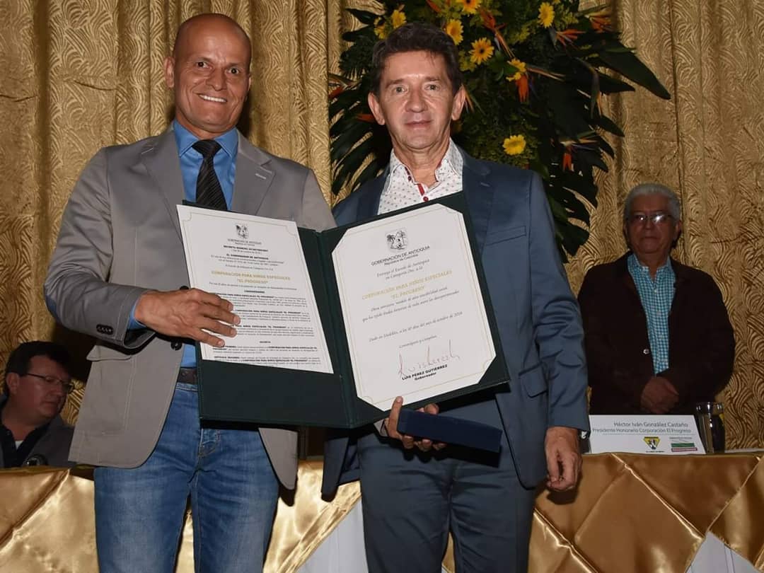 Y siguen en ascenso las acciones del famoso líder, Héctor Iván González, actual subdirector de educación de Cornare. Y decimos que en ascenso se cotizan sus acciones en la bolsa, porque aunque callado puede ser un candidato de perfil para ocupar la dirección de la máxima autoridad ambiental de los orientales, a su prolífica carrera y reconocimientos se suma el recibido ayer, de manos del mismísimo gobernador de Antioquia, Luis Pérez Gutiérrez, el escudo Antioquia categoría Oro. El mandatario seccional se pegó el viaje hasta La Esparta para entregar esta distinción y también aprovechó para visitar con el alcalde, Édgar Villegas la placa huella de la vereda La Esperanza.
